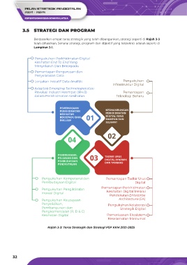 Berdasarkan empat teras strategik yang telah dibangunkan, strategi seperti di Rajah 3-3